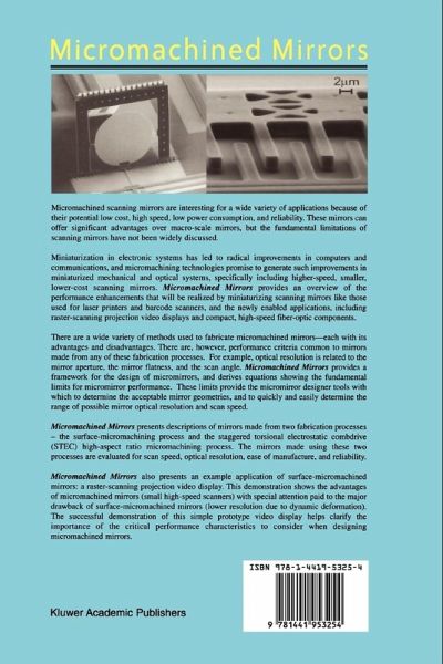 There are a wide variety of methods used to fabricate micromachined mirrors - each with its advantages and disadvantages. There are, however, performance criteria common to mirrors made from any of these fabrication processes. For example, optical resolution is related to the mirror aperture, the mirror flatness, and the scan angle. Micromachined Mirrors provides a framework for the design of micromirrors, and derives equations showing the fundamental limits for micromirror performance. These limits provide the micromirror designer tools with which to determine the acceptable mirror geometries, and to quickly and easily determine the range of possible mirror optical resolution and scan speed.