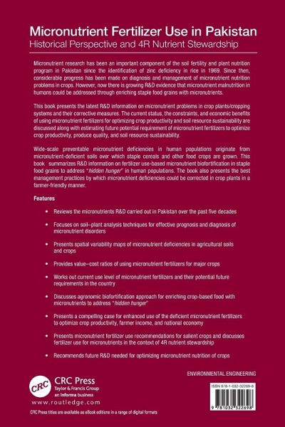 Micronutrients and Their Deficiencies. Prognosis and Diagnosis of Micronutrient Deficiencies. Quality Issues with Micronutrient Research Data. Micronutrient R&D in Pakistan: Historical Perspective and Current Status. Micronutrient Status of Soils and Crops in Pakistan. Crop Yield Increases with Micronutrient Fertilization and its Economics. Micronutrient Fertilizer Sources, Availability and Quality in Pakistan. Micronutrient Fertilizer Use Efficiency, Residual Effect and Soil Balances. Micronutrient Fertilizer Use in Pakistan. Strategies for Improving Micronutrient Management. Deficiencies-Linked Micronutrient Malnutrition. Some Misconceptions About Micronutrients. Micronutrient Research and Development Needs. Managing Micronutrient Deficiencies in the Context of 4R Nutrient Stewardship. Recommendations.