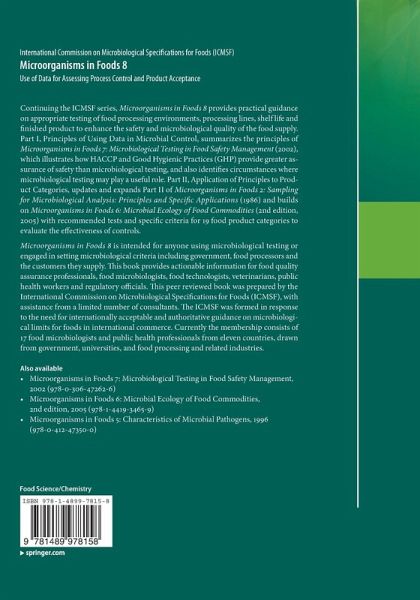 "Microorganisms in Foods 8 is a virtual gold mine for all who wish to make themselves familiar with current approaches and policy of microbial food safety, or to update their knowledge on the subject...The ICMSF has established itself as a leading source of independent and impartial scientific advice to international standard setting bodies and national governments and industry. [Microorganisms in Foods 8] is a noble piece of work, which adds to this reputation." -Niels Skovgaard, International Journal of Food Microbiology "A...reference book that I believe should be in every food processor's library." -Ron Wasik, President of RJW Consulting Canada, Ltd.