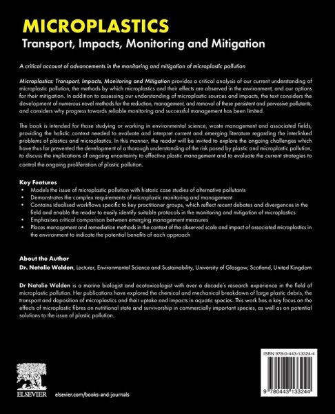 Microplastics: Transport, Impacts, Monitoring and Mitigation provides a critical analysis of our current understanding of microplastic science, the methods by which microplastic are observed in the environment, and our options for mitigation and remediation. The book is intended for those studying or working in the fields of environmental science and waste management (as well as associated areas), and provides the holistic context needed to evaluate and interpret the outputs associated with the interlinked problems of plastic and microplastics. In this manner, the reader will be invited to explore the ongoing challenges which have thus far prevented the development of a thorough understanding of the risk posed by plastic and microplastic pollution to be able to discuss the implications of ongoing uncertainty to effective plastic management and evaluate the current strategies to control the ongoing proliferation of plastic pollution.