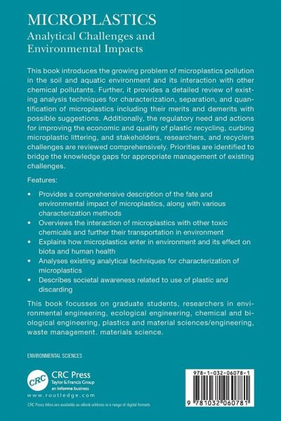 This book introduces the growing problem of microplastics pollution in the soil and aquatic environment and its interaction with other chemical pollutants. Further, it provides a detailed review of existing analysis techniques for characterization, separation, and quantification of microplastics including their merits and demerits with possible suggestions. Additionally, the regulatory need and actions for improving the economic and quality of plastic recycling, curbing microplastic littering, and stakeholders, researchers, and recyclers challenges are reviewed comprehensively. Priorities are identified to bridge the knowledge gaps for appropriate management of existing challenges.