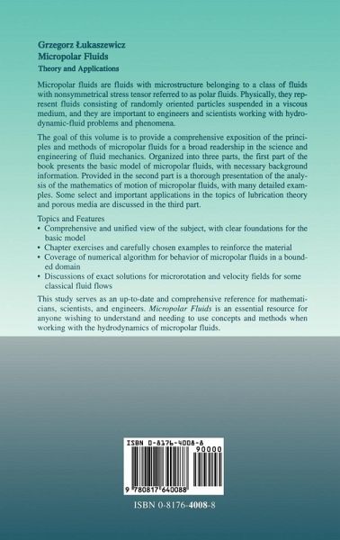 Micropolar fluids are fluids with microstructure. They belong to a class of fluids with nonsymmetric stress tensor that we shall call polar fluids, and include, as a special case, the well-established Navier-Stokes model of classical fluids that we shall call ordinary fluids. Physically, micropolar fluids may represent fluids consisting of rigid, randomly oriented (or spherical) particles suspended in a viscous medium, where the deformation of fluid particles is ignored. The model of micropolar fluids introduced in [65] by C. A. Eringen is worth studying as a very well balanced one. First, it is a well-founded and significant generalization of the classical Navier-Stokes model, covering, both in theory and applications, many more phenomena than the classical one. Moreover, it is elegant and not too complicated, in other words, man ageable to both mathematicians who study its theory and physicists and engineers who apply it. The main aim of this book is to present the theory of micropolar fluids, in particular its mathematical theory, to a wide range of readers. The book also presents two applications of micropolar fluids, one in the theory of lubrication and the other in the theory of porous media, as well as several exact solutions of particular problems and a numerical method. We took pains to make the presentation both clear and uniform.