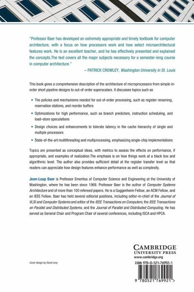 'The book gives a comprehensive and profound description of the architecture of microprocessors from simple in-order short pipeline designs to out-of-order superscalers ... The book is very well structured with good presentation of the material. Each chapter finishes with many exercises, examples and additional literature. All the references are very up-to-date. As a conclusion I warmly recommend this book as a textbook for a course or just as a reference book.' Zentralblatt MATH
