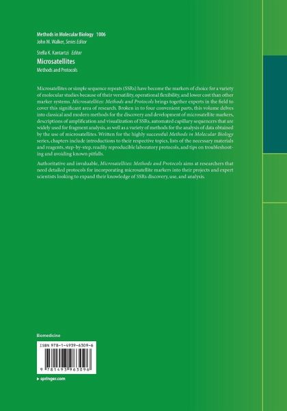 Authoritative and invaluable, Microsatellites: Methods and Protocols aims at researchers that need detailed protocols for incorporating microsatellite markers into their projects and expert scientists looking to expand their knowledge of SSRs discovery, use, and analysis.