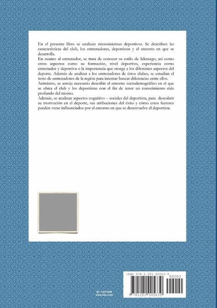 En el presente libro se analizan microsistemas deportivos. Se describen las características del club, los entrenadores, deportistas y el entorno en que se desarrolla. En cuanto al entrenador, se trata de conocer su estilo de liderazgo, así como otros aspectos como su formación, nivel deportivo, experiencia como entrenador y deportiva o la importancia que otorga a los diferentes aspectos del deporte. Además de analizar a los entrenadores de éstos clubes, se estudian el resto de entrenadores de la región para intentar buscar diferencias entre ellos. Asimismo, se antoja necesario describir el entorno sociodemográfico en el que se ubica el club y los deportistas con el fin de tener un conocimiento más profundo del mismo. Además, se analizan aspectos cognitivo - sociales del deportista, para descubrir su motivación en el deporte, sus atribuciones del éxito y cómo estos factores pueden verse influenciados por el entorno en que se desenvuelve el deportista.