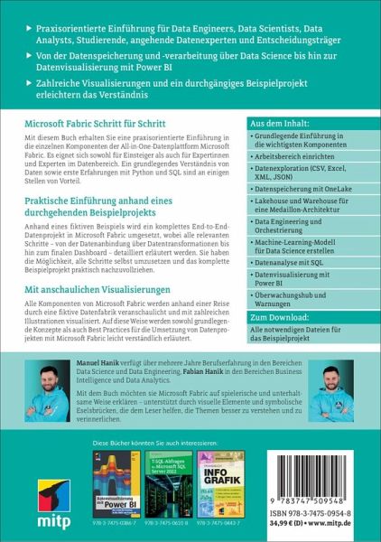 Mit diesem Buch erhalten Sie eine praxisorientierte Einführung in die einzelnen Komponenten der All-in-One-Datenplattform Microsoft Fabric. Es eignet sich sowohl für Einsteiger als auch für Expertinnen und Experten im Datenbereich. Ein grundlegendes Verständnis von Daten sowie erste Erfahrungen mit Python und SQL sind an einigen Stellen von Vorteil.