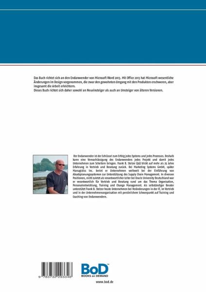 Das Buch richtet sich an den Endanwender von Microsoft Word 2013. Mit Office 2013 hat Microsoft wesentliche Änderungen im Design vorgenommen, die zwar den gewohnten Umgang mit den Produkten erschweren, aber insgesamt die Arbeit erleichtern.Dieses Buch richtet sich daher sowohl an Neueinsteiger als auch an Umsteiger von älteren Versionen.