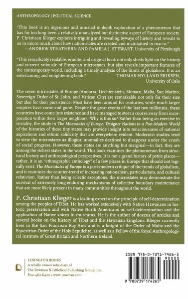 Figures Foreword: Anomalies that Reaffirm Dibyesh Anand Preface Acknowledgments Chapter One: Introduction-Towards the Post-Modern State Chapter Two: Principality of Andorra Chapter Three: Principality of Liechtenstein Chapter Four: Sovereign Military Order of Malta Chapter Five: Republic of Malta Chapter Six: Republic of San Marino Chapter Seven: State of Vatican City Chapter Eight: Principality of Monaco Chapter Nine: Flotsam, Jetsam, and Survey Errors Chapter Ten: The Limits of Globalism Bibliography Index About the Author