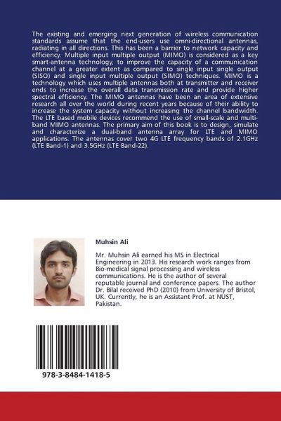 The existing and emerging next generation of wireless communication standards assume that the end-users use omni-directional antennas, radiating in all directions. This has been a barrier to network capacity and efficiency. Multiple input multiple output (MIMO) is considered as a key smart-antenna technology, to improve the capacity of a communication channel at a greater extent as compared to single input single output (SISO) and single input multiple output (SIMO) techniques. MIMO is a technology which uses multiple antennas both at transmitter and receiver ends to increase the overall data transmission rate and provide higher spectral efficiency. The MIMO antennas have been an area of extensive research all over the world during recent years because of their ability to increase the system capacity without increasing the channel bandwidth. The LTE based mobile devices recommend the use of small-scale and multi-band MIMO antennas. The primary aim of this book is to design, simulate and characterize a dual-band antenna array for LTE and MIMO applications. The antennas cover two 4G LTE frequency bands of 2.1GHz (LTE Band-1) and 3.5GHz (LTE Band-22).
