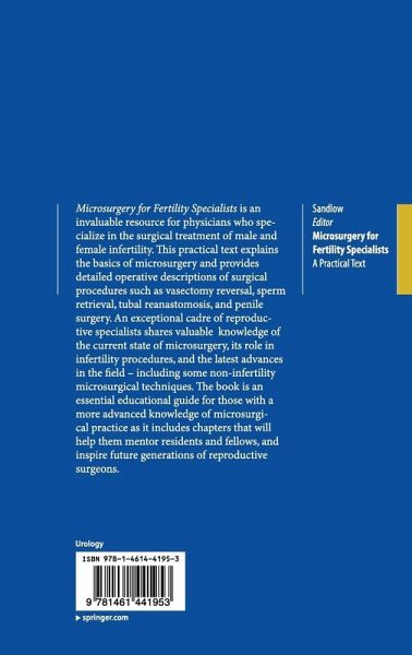 "Editor Jay Sandlow and 25 co-authors aimed to gather information regarding microsurgery for infertility, including technical aspects and indications. The text book is remarkable for the co-authorship of each chapter, written by a senior and a junior surgeon. ... This original textbook is well illustrated and provides the reader with practical information, which is useful to urologists involved in andrology." (European Urology Today, Vol. 25 (3), June-July, 2013)