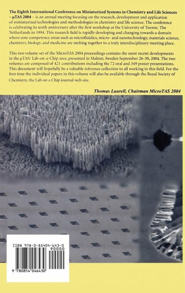 The Eighth International Conference on Miniaturized Systems in Chemistry and Life Science - µTas 2004 - is an annual meeting focusing on the research, development and application of miniaturized technologies and methodologies in chemistry and life science. The conference is celebrating its tenth anniversary after the first workshop at the University of Twente, The Netherlands in 1994. This research field is rapidly developing and changing towards a domain where core competence areas such as microfluidics, micro- and nanotechnology, materials science, chemistry, biology, and medicine are melting together to a truly interdisciplinary meeting place. This volume is the first in a two volume set, a valuable reference collection to all working in this field. TOC:Particle Sorting.- Motormolecules.- Cell Positioning.- MEMS.- Applications I.- Microfluidics I.- Nanotechnology.- Others.- Fluid Pumping.- Proteomics.- Cell Culture I.- Nanochannels.- Particles.- Optical Detection.- Applications II.- Microfluidics II.- Author Index.- Key Word Index.