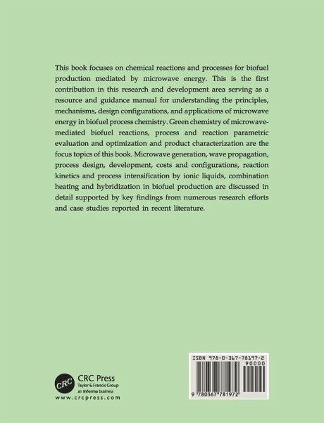 This book focuses on chemical syntheses and processes for biofuel production mediated by microwave energy. This is the first contribution in this area serving as a resource and guidance manual for understanding the principles, mechanisms, design, and applications of microwaves in biofuel process chemistry. Green chemistry of microwave-mediated biofuel reactions and thermodynamic potentials for the process biochemistry are the focus of this book. Microwave generation, wave propagation, process design, development and configurations, and biofuel applications¿are discussed in detail.