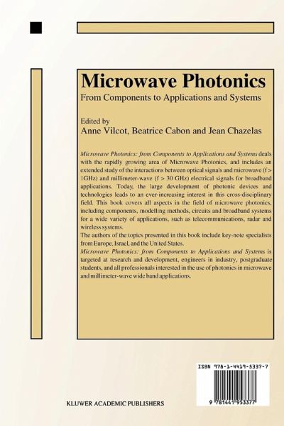 Microwave Photonics: from Components to Applications and Systems deals with the rapidly growing area of Microwave Photonics, and includes an extended study of the interactions between optical signals and microwave (f > 1GHz) and millimeter-wave (f > 30 GHz) electrical signals for broadband applications. Today, the large development of photonic devices and technologies leads to an ever-increasing interest in this cross-disciplinary field. This book covers all aspects of the field of microwave photonics, including components, modeling methods, circuits and broadband systems for a wide variety of applications, such as telecommunications, radar and wireless systems.