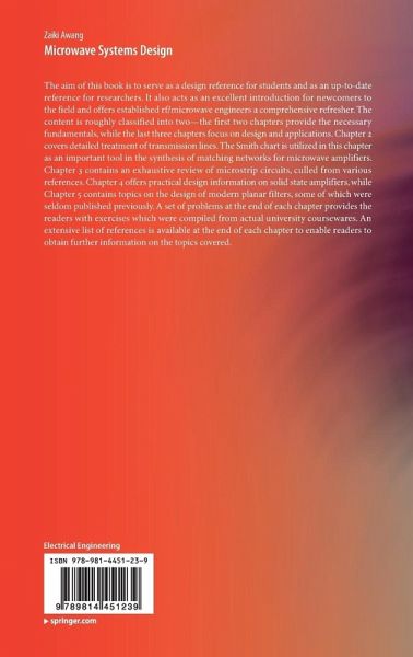 The aim of this book is to serve as a design reference for students and as an up-to-date reference for researchers. It also acts as an excellent introduction for newcomers to the field and offers established rf/microwave engineers a comprehensive refresher. The content is roughly classified into two - the first two chapters provide the necessary fundamentals, while the last three chapters focus on design and applications. Chapter 2 covers detailed treatment of transmission lines. The Smith chart is utilized in this chapter as an important tool in the synthesis of matching networks for microwave amplifiers. Chapter 3 contains an exhaustive review of microstrip circuits, culled from various references. Chapter 4 offers practical design information on solid state amplifiers, while Chapter 5 contains topics on the design of modern planar filters, some of which were seldom published previously. A set of problems at the end of each chapter provides the readers with exercises which arecompiled from actual university exam questions. An extensive list of references is available at the end of each chapter to enable readers to obtain further information on the topics covered.