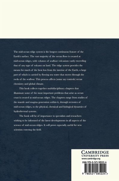 This book collects together multidisciplinary chapters on the most important problems that arise at mid-ocean ridges. The mid-ocean ridge system is the longest continuous feature of the earth's surface, at which the great majority of ocean floor is created, and volumes of seafloor volcanism vastly exceed those on land. It provides the means for much of the heat loss from the interior of the earth. Chemicals as well as heat are extracted by flowing seawater through the rocks of the seafloor, leading to spectacular areas of hydrothermal venting, affecting ocean chemistry and global climate. The chapters range from studies of the mantle and magma generation within it, through tectonics of mid-ocean ridges, to the physical, chemical and biological dynamics of hydrothermal systems. The book will be of importance to specialists and researchers wishing to become informed of the latest developments in the science of mid-ocean ridges. It will prove especially useful for new scientists entering the field.