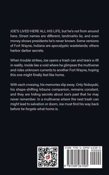 Joe's lived here all his life, but he's not from around here. Street names are different, landmarks lie, and even money shows presidents he's never known. Some versions of Fort Wayne, Indiana are apocalyptic wastelands; others harbor darker secrets. When trouble strikes, Joe opens a trash can and tears a rift in reality. Inside lies a void where he glimpses the multiverse and rides unknown currents to another Fort Wayne, hoping this one might finally feel like home. With each crossing, his memories slip away. Only Nobuyuki, his shape-shifting kitsune companion, remains constant, and they are hiding secrets about Joe's past that he may never remember. In a multiverse where the next trash can might lead to salvation or doom, Joe must find his way back before he forgets what home is.