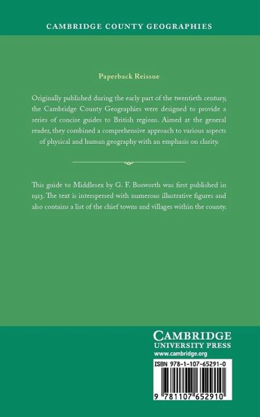 Originally published during the early part of the twentieth century, the Cambridge County Geographies were designed to provide a series of concise guides to British regions. Aimed at the general reader, they combined a comprehensive approach to various aspects of physical and human geography with an emphasis on clarity. This guide to Middlesex by G. F. Bosworth was first published in 1913. The text is interspersed with numerous illustrative figures and also contains a list of the chief towns and villages within the county.
