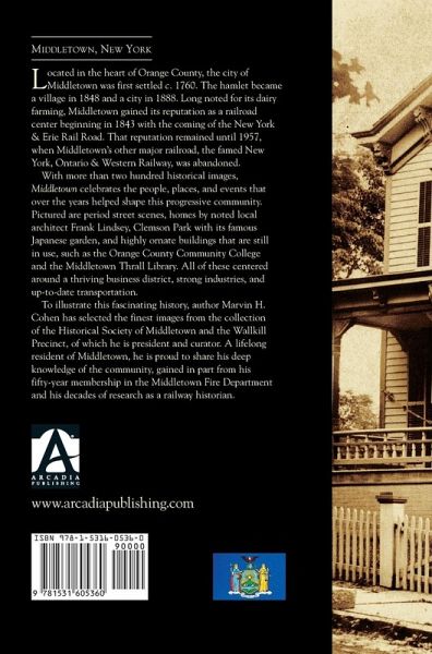 Located in the heart of Orange County, the city of Middletown was first settled c. 1760. The hamlet became a village in 1848 and a city in 1888. Long noted for its dairy farming, Middletown gained its reputation as a railroad center beginning in 1843 with the coming of the New York & Erie Rail Road. That reputation remained until 1957, when Middletown's other major railroad, the famed New York, Ontario & Western Railway, was abandoned. With more than two hundred historical images, Middletown celebrates the people, places, and event that over the years helped shape this progressive community. Picture are period street scenes, homes by noted local architect Frank Lindsey, Clemson Park with is famous Japanese garden, and highly ornate buildings that are still in use, such as the Orange County Community College and the Middletown Thrall Library. All of these centered around a thriving business district, strong industries, and up-to-date transportation.