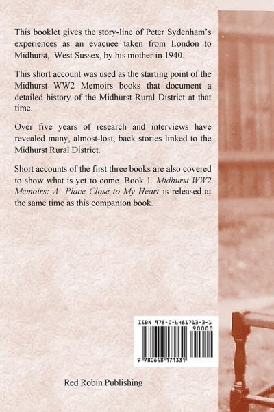 The memoirs series of books, spanning from up to, and including WW2, cover the history of the Midhurst Rural District MRD, a beautiful part of West Sussex in England. They are intended to be a living research resource for others to pick up from if they seek to delve deeper, or to learn of their heritage. They began with my children, and then their children, asking me to help them with their school work on ‘What did your father (or grandfather) do in WW2?’ I only had a superficial child’s knowledge of my formative years as an evacuee taken to the Midhurst. That was not good enough! Writing about my own evacuation experience would barely cover 80 pages! It would not contribute much of general interest unless the back stories were also present. It led me to revealing and researching the stories behind my own experiences of that time. Fascinating! This book is the companion guide to the Midhurst WW2 Memoirs series of books. It gives the main points of my own story presented in Midhurst in 2014 to the Midhurst Society, and then describes the follow-on from that event as the books are born. All books in the series are made available as Print on Demand on-line editions, along with their e-book equivalents. Local, off the shelf, purchase will be available throughout the Midhurst Rural District.