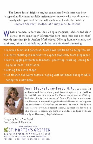 "The future doesn't frighten me, but sometimes I wish there was help, a type of midlife mom roadside assistance-someone who would show up exactly when you need it and tell you how to handle the problem." -Janice Stewart, mother at thirty-nine to Joshua What's a woman to do when she's facing menopause, toddlers, and elder care all at the same time? Women who have "been there and done that" provide some insight in Midlife Motherhood. Offering humor, warmth, and frankness, this is a handholding guide for the uninitiated. What's on their minds: · Common fears and concerns: from Down's syndrome to being too old · Fertility challenges and what to physically expect from pregnancy · How to juggle postpartum demands-parenting, working, caring for aging parents . . . and all at once! · Getting back into shape · Hot flashes and warm bottles: coping with hormonal changes while caring for a new baby