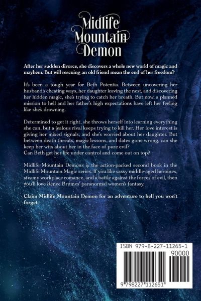 After her sudden divorce, she discovers a whole new world of magic and mayhem. But will rescuing an old friend mean the end of her freedom? It's been a tough year for Beth Potentia. Between uncovering her husband's cheating ways, her daughter leaving the nest, and discovering her hidden magic, she's trying to catch her breath. But now, a planned mission to hell and her father's high expectations have left her feeling like she's drowning. Determined to get it right, she throws herself into learning everything she can, but a jealous rival keeps trying to kill her. Her love interest is giving her mixed signals, and she's worried about her daughter. But between death threats, magic lessons, and dates gone wrong, can she keep her wits about her in the face of pure evil? Can Beth get her life under control and come out on top? Midlife Mountain Demons is the action-packed second book in the Midlife Mountain Magic series. If you like sassy middle-aged heroines, steamy workplace romance, and a battle against the forces of evil, then you'll love Renee Brumes' paranormal women's fantasy. Read Midlife Mountain Demon for an adventure to hell you won't forget.