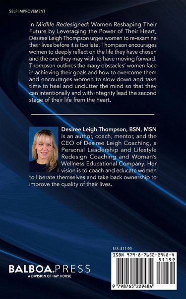 In Midlife Redesigned: Women Reshaping Their Future by Leveraging the Power of Their Heart, Desiree Leigh Thompson urges women to re-examine their lives before it is too late. Thompson encourages women to deeply reflect on the life they have chosen and the one they may wish to have moving forward. Thompson outlines the many obstacles' women face in achieving their goals and how to overcome them and encourages women to slow down and take time to heal and unclutter the mind so that they can intentionally and with integrity lead the second stage of their life from the heart.