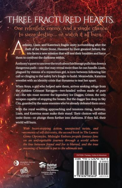 In Midnight Embers, the gripping second installment of The Lumos Gems Chronicles, the aftermath of the bone dragon battle leaves our heroes reeling, their unity fractured and their world in turmoil.Anthony, torn between his desire for adventure and the weight of responsibility, grapples with his place in the world, while Liam wrestles with haunting visions that threaten to consume him. As tensions escalate and shadows gather, a mysterious girl arrives, revealing she's being pursued by another Lumos Gem monster-the Crimson Ravagers.With the Water Stone stolen and a malevolent Noxenos on the rise, Anthony, Liam, and Katerina embark on a perilous quest to retrieve the Ice Dagger, Grimir—their only hope against the relentless Crimson Ravagers. But their journey takes a dark turn when they uncover a truth that forces them to align with old enemies, setting them on a collision course with destiny.As alliances crumble and secrets unravel, they must confront their deepest fears and make sacrifices that will shape the fate of their world forever. Midnight Embers propels fantasy fans on an epic adventure filled with twists, revelations, and heart-stopping action that will keep them on the edge of their seats until the very end.