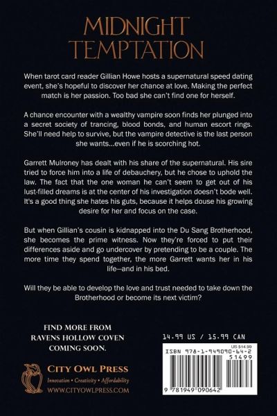 When tarot card reader Gillian Howe hosts a supernatural speed dating event, she's hopeful to discover her chance at love. Making the perfect match is her passion. Too bad she can't find one for herself. A chance encounter with a wealthy vampire soon finds her plunged into a secret society of trancing, blood bonds, and human escort rings. She'll need help to survive, but the vampire detective is the last person she wants...even if he is scorching hot. Garrett Mulroney has dealt with his share of the supernatural. His sire tried to force him into a life of debauchery, but he chose to uphold the…mehr