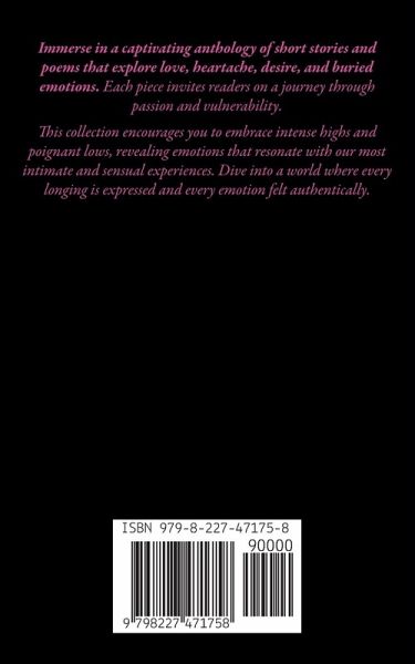 Immerse yourself in a mesmerizing anthology of short stories and grown & sexy poems that richly explore the multifaceted themes of love, heartache, desire, and the profound emotions we often keep buried deep within our hearts. Each piece serves as an invitation, urging readers to navigate on an exhilarating journey through the landscapes of passion and vulnerability. This poetry collection calls upon you to embrace electrifying highs and poignant lows, unveiling powerful emotions that resonate with our most intimate, grown, and sensual encounters. Prepare to dive deep into a world where every longing is articulated and every emotion is felt with raw authenticity.