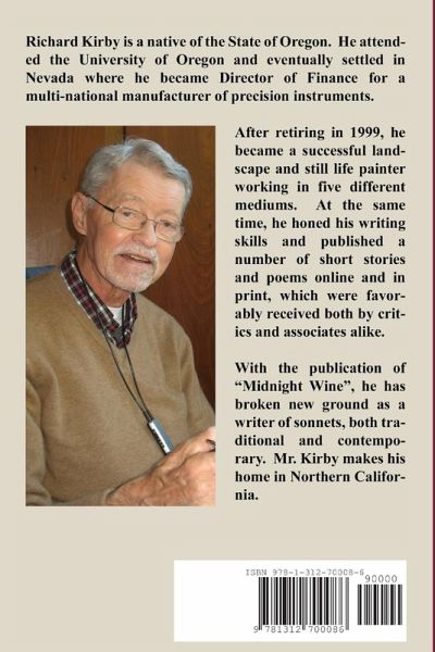 Midnight Wine is a collection of seventy-eight sonnets which include a diversity of forms and styles from strictly formal to blank verse. These poems form a kind of journey through time and experience. The reader is invited to share that journey, which explores the vortex of events and reflections-some serious and some humorous-but all drawn from a single life, that of Richard Kirby.