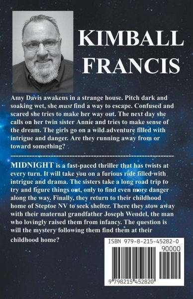 Midnight is a fast-paced thriller that has twists at every turn. It will take you on a furious ride filled with intrigue and drama. Two sisters take a long road trip to try and figure things out mysterious events occurring in their lives, only to find more danger along the way. They ultimately return to their childhood home in Steptoe, Nevada, to seek shelter with their maternal grandfather Joseph Wendel, the man who raised them from infancy. The terrifying question is whether the danger chasing them will find its way to their childhood home and the grandfather they love.