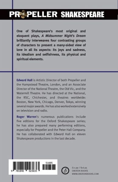 One of Shakespeare's most original and eloquent plays, A Midsummer Night's Dream brilliantly interweaves four contrasting groups of characters to present a many-sided view of love in all its aspects: its joys and sadness, its idealism and selfishness, its physical and spiritual elements. This performing edition was prepared for Propeller's all-male company of twelve actors, at the Watermill Theatre, Newbury, and toured the West End in 2003. Propeller's markedly contemporary approach to Shakespeare brought great success for Rose Rage, their version of the Henry VI plays, whichwon the TMA/Barclays Theatre Award for the best touring production of 2001.