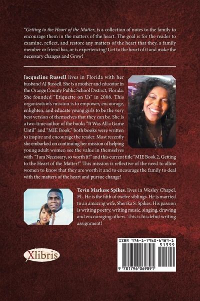 "Getting to the Heart of the Matter, is a collection of notes to the family to encourage them in the matters of the heart. The goal is for the reader to examine, reflect, and restore any matters of the heart that they, a family member or friend has, or is experiencing! Get to the heart of it and make the necessary changes and Grow!