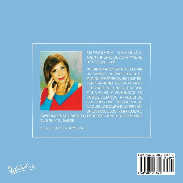 EMPRESARIA, DINAMINCA, AVENTURERA, DEVOTA MADRE DE DOS (2) HIJOS. NO SIEMPRE ACERTE AL ELEGIR UN CAMINO, QUIZAS PORQUE EL MUNDO ME PARECIA SIN LIMITES, PERO APRENDI DE CADA PASO ERRONEO, ME ENRIQUECI CON MIS VIAJES Y VIVENCIAS EN PAISES LEJANOS, APRENDI DE SUS CULTURAS. PRESTE AYUDA A AQUELLOS QUE ME LO PEDIAN, ORIENTANDOLOS, PARA QUE NO CAYERAN EN MIS PASADOS ERRORES. NUNCA BUSQUE SINO EL BIEN Y EL SABER. SI, YO PUDE, TU TAMBIEN!
