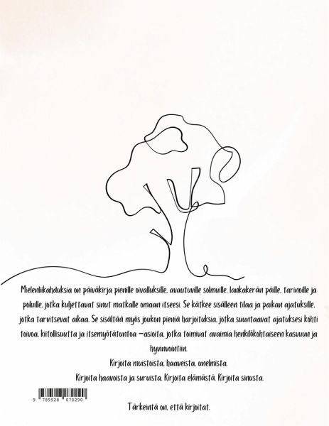 Mielenliikahduksia on päiväkirja pienille oivalluksille, avautuville solmuille, lankakerän päille, tarinoille ja poluille, jotka kuljettavat sinut matkalle omaan itseesi. Se kätkee sisälleen tilaa ja paikan ajatuksille, jotka tarvitsevat aikaa. Se sisältää myös joukon pieniä harjoituksia, jotka suuntaavat ajatuksesi kohti toivoa, kiitollisuutta ja itsemyötätuntoa. Asioita, jotka toimivat avaimia henkilökohtaiseen kasvuun ja hyvinvointiin. Kirjoita muistoista, haaveista, unelmista, kirjoita haavoista ja suruista. Kirjoita elämästä, kirjoita sinusta. Tärkeintä on, että kirjoitat.