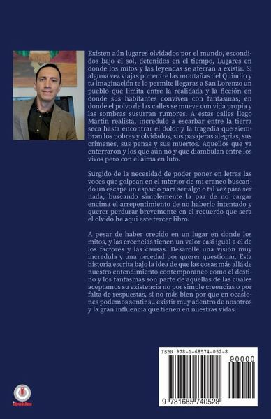 Existen aún lugares olvidados por el mundo, escondidos bajo el sol, detenidos en el tiempo, Lugares en donde los mitos y las leyendas se aferran a existir. Si alguna vez viajas por entre las montañas del Quindio y tu imaginación te lo permite llegarás a San Lorenzo un pueblo que limita entre la realidada y la ficción en donde sus habitantes conviven con fantasmas, en donde el polvo de las calles se mueve con vida propia y las sombras susurran rumores. A estas calles llego Martin, realista, incredulo a escarbar entre la tierra seca hasta encontrar el dolor y la tragedia que siembran los pobres y olvidados, sus pasajeras alegrias, sus crimenes, sus penas y sus muertos. Aquellos que ya enterraron y los que aún no y que diambulan entre los vivos pero con el alma en luto. Surgido de la necesidad de poder poner en letras las voces que golpean en el interior de mi craneo buscando un escape un espacio para ser algo o tal vez para ser nada, buscando simplemente la paz de no cargar encima el arrepentimiento de no haberlo intentado y querer perdurar brevemente en el recuerdo que sera el olvido he aqui este tercer libro. A pesar de haber crecido en un lugar en donde los mitos, y las creencias tienen un valor casi igual a el de los factores y las causas. Desarolle una visión muy incredula y una necedad por querer questionar. Esta historia escrita bajo la idea de que las cosas más allá de nuestro entendimiento contemporáneo como el destino y los fantasmas son parte de aquellas de las cuales aceptamos su existencia no por simple creencias o por falta de respuestas, si no más bien por que en ocasiones podemos sentir su existir muy adentro de nosotros y la gran influencia que tienen en nuestras vidas.