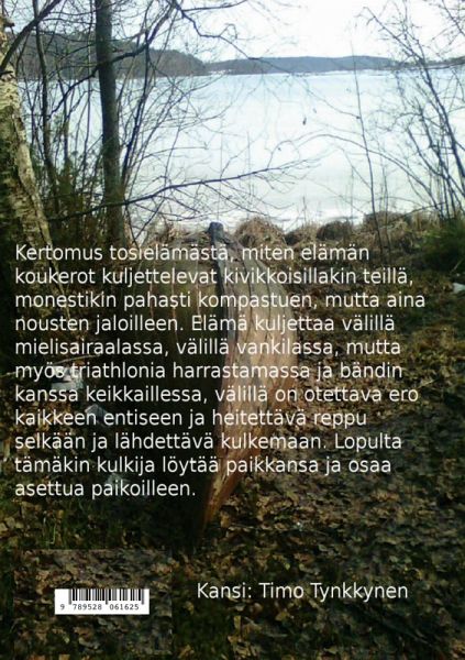 Kertomus tosielämästä, miten elämän koukerot kuljettavat kivikkoisillakin teillä, monestikin pahasti kompastuen, mutta aina nousten jaloilleen. Elämä kuljettaa välillä mielisairaalassa, välillä vankilassa, mutta myös triathlonia harrastamassa ja bändin kanssa keikkaillessa, välillä on otettava ero kaikkeen entiseen ja heitettävä reppu selkään ja lähdettävä kulkemaan. Lopulta tämäkin kulkija löytää paikkansa ja osaa asettua paikoilleen.