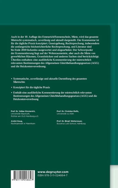 "Emmerich/Sonnenschein? darf getrost als Standardwerk zum Mietrecht bezeichnet werden, der auf den Arbeitstisch jedes Praktikers gehört." -- Reinhold Horst in: Haus & Grund Niedersachsen 1-2/2008