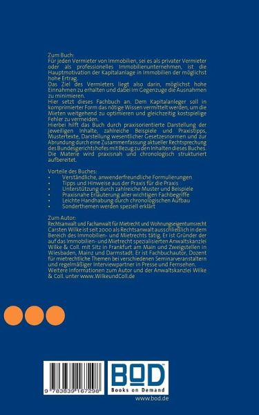 Für jeden Vermieter von Immobilien, sei es als privater Vermieter oder als professionelles Immobilienunternehmen, ist die Hauptmotivation der Kapitalanlage in Immobilien der möglichst hohe Ertrag. Das Ziel des Vermieters liegt also darin, möglichst hohe Einnahmen zu erhalten und dabei im Gegenzug die Ausnahmen zu minimieren.Hier setzt dieses Fachbuch an. Dem Kapitalanleger soll in komprimierter Form das nötige Wissen vermittelt werden, um die Mieten weitgehend zu optimieren und gleichzeitig kostspielige Fehler zu vermeiden.Hierbei hilft das Buch durch praxisorientierte Darstellung der jeweiligen Inhalte, zahlreiche Beispiele und Praxistipps, Mustertexte, Darstellung wesentlicher Gesetzesnormen und zur Abrundung durch eine Zusammenfassung aktueller Rechtsprechung des Bundesgerichtshofes mit Bezug zu den Inhalten dieses Buches.Die Materie wird praxisnah und chronologisch strukturiert aufbereitet.