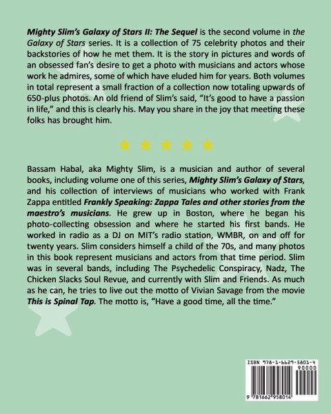 Mighty Slim's Galaxy of Stars II: The Sequel is a collection of 75 celebrity photos with Slim and their back stories of how they came to happen. It represents a small slice of a collection totaling over 650 photos.