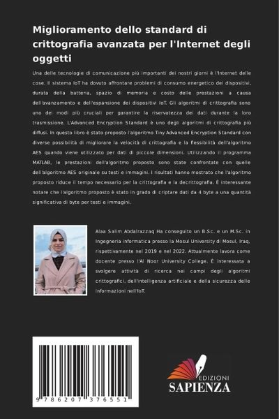 Una delle tecnologie di comunicazione più importanti dei nostri giorni è l'Internet delle cose. Il sistema IoT ha dovuto affrontare problemi di consumo energetico dei dispositivi, durata della batteria, spazio di memoria e costo delle prestazioni a causa dell'avanzamento e dell'espansione dei dispositivi IoT. Gli algoritmi di crittografia sono uno dei modi più cruciali per garantire la riservatezza dei dati durante la loro trasmissione. L'Advanced Encryption Standard è uno degli algoritmi di crittografia più diffusi. In questo libro è stato proposto l'algoritmo Tiny Advanced Encryption Standard con diverse possibilità di migliorare la velocità di crittografia e la flessibilità dell'algoritmo AES quando viene utilizzato per dati di piccole dimensioni. Utilizzando il programma MATLAB, le prestazioni dell'algoritmo proposto sono state confrontate con quelle dell'algoritmo AES originale su testi e immagini. I risultati hanno mostrato che l'algoritmo proposto riduce il tempo necessario per la crittografia e la decrittografia. È interessante notare che l'algoritmo proposto è stato in grado di criptare dati da 4 byte a una quantità significativa di byte per testi e immagini.