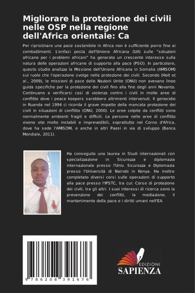 Per ripristinare una pace sostenibile in Africa non è sufficiente porre fine ai combattimenti. L'enfasi posta dall'Unione Africana (UA) sulle "soluzioni africane per i problemi africani" ha generato un crescente interesse sulla natura delle operazioni africane di supporto alla pace (PSO). In particolare, questo studio analizza la Missione dell'Unione Africana in Somalia (AMISOM) sul ruolo che l'operazione svolge nella protezione dei civili. Secondo (Holt et al., 2009), le missioni di pace delle Nazioni Unite (ONU) non avevano linee guida specifiche per la protezione dei civili fino alla fine degli anni Novanta. Continuano a verificarsi casi di violenza contro i civili in molte aree di conflitto dove i peace keepers sarebbero altrimenti intervenuti. Il genocidio in Ruanda nel 1994 ci ricorda il grave impatto della mancata protezione dei civili in situazioni di conflitto (ONU, 2000). Le aree colpite da conflitti sono normalmente ambienti fragili e difficili. Le persone nelle aree di conflitto vivono vite molto instabili e imprevedibili, soprattutto nel Corno d'Africa, dove ha sede l'AMISOM, e anche in altri Paesi in via di sviluppo (Banca Mondiale, 2011).
