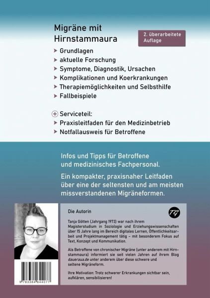 Nur wenige Zehntausend der fast 18 Millionen Migränebetroffenen in Deutschland leiden an einer der schwersten und seltensten Formen: der Migräne mit Hirnstammaura (früher: Basilarismigräne).Diese neurologische Erkrankung ist selbst unter Fachärztinnen und Fachärzten immer noch weitgehend unbekannt. Betroffene erleben schlaganfallähnliche Symptome wie Sprachverlust, Doppeltsehen, Bewegungs- und Bewusstseinsstörungen - und werden dennoch oft nicht ernst genommen, als psychosomatisch erkrankt eingestuft, falsch behandelt oder jahrelang ohne Diagnose gelassen.Dieses Buch liefert fundierte, verständlich aufbereitete Informationen über:- die medizinische Einordnung nach aktuellem Stand,- typische Symptome, Diagnosekriterien und Ursachen,- mögliche Komplikationen und Begleiterkrankungen,- Therapieoptionen und Selbsthilfestrategien.Ergänzt wird der medizinische Teil durch authentische Fallberichte Betroffener - und durch das Erfahrungswissen der Autorin, die selbst an dieser Form der Migräne leidet.Neu in der 2., überarbeiteten Auflage (2025):- aktualisierte Leitlinienbezüge und Begriffsklärung- Aktualisierung und Ergänzung zur Prophylaxe- überarbeitete Selbsthilfetipps- aktualisierter Notfallausweis zum AusschneidenOb für Betroffene, Angehörige oder medizinisches Personal - dieses Buch schafft Klarheit in einem weitgehend unerforschten Bereich der Migränemedizin.Weitere Informationen und Direktverlinkungen: www.hirnstammaura.de