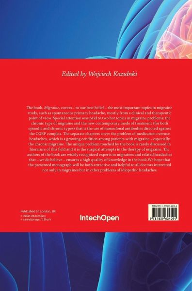The book, Migraine, covers ¿ to our best belief ¿ the most important topics in migraine study, such as spontaneous primary headache, mostly from a clinical and therapeutic point of view. Special attention was paid to two hot topics in migraine problems: the chronic type of migraine and the new contemporary mode of treatment (for both episodic and chronic types) that is the use of monoclonal antibodies directed against the CGRP complex. The separate chapters cover the problem of medication overuse headaches, which is a growing condition among patients with migraine ¿ especially the chronic migraine. The unique problem touched by the book is rarely discussed in literature of this field and it is the surgical attempts in the therapy of migraine. The authors of the book are widely recognized experts in migraines and related headaches that ¿ we do believe ¿ ensures a high quality of knowledge in the book. We hope that the presented monograph will be both attractive and helpful to all doctors interested not only in migraines but in other problems of idiopathic headaches.