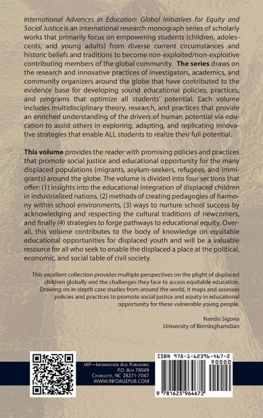 A volume in International Advances in Education: Global Initiatives for Equity and Social Justice Series Editors: Elinor L. Brown, University of Kentucky, Rhonda Craven, University of Western Sydney, and George McLean, Catholic Universities of America. International Advances in Education: Global Initiatives for Equity and Social Justice is an international research monograph series of scholarly works that primarily focus on empowering students (children, adolescents, and young adults) from diverse current circumstances and historic beliefs and traditions to become non-exploited/non-exploitive contributing members of the global community. The series draws on the research and innovative practices of investigators, academics, and community organizers around the globe that have contributed to the evidence base for developing sound educational policies, practices, and programs that optimize all students' potential. Each volume includes multidisciplinary theory, research, and practices that provide an enriched understanding of the drivers of human potential via education to assist others in exploring, adapting, and replicating innovative strategies that enable ALL students to realize their full potential. This volume provides the reader with promising policies and practices that promote social justice and educational opportunity for the many displaced populations (migrants, asylum-seekers, refugees, and immigrants) around the globe. The volume is divided into four sections that offer: (1) insights into the educational integration of displaced children in industrialized nations, (2) methods of creating pedagogies of harmony within school environments, (3) ways to nurture school success by acknowledging and respecting the cultural traditions of newcomers, and finally (4) strategies to forge pathways to educational equity. Overall, this volume contributes to the body of knowledge on equitable educational opportunities for displaced youth and will be a valuable resource for all who seek to enable the displaced a place at the political, economic, and social table of civil society.