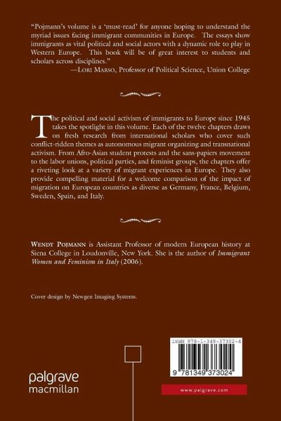 Introduction; W.Pojmann PART I: MIGRANT ACTIVISTS IN NATIONAL AND TRANSNATIONAL SOCIAL MOVEMENTS For the Nation and for Work: Black Activism in 1960s Paris; F.Germain Dissident Guests: Afro-Asian Students and Transnational Activism in the West German Protest Movement; Q.Slobodian The Kurdish Conundrum in Europe: Political Opportunities and Transnational Activism; V.Eccarius-Kelly The French 'Sans-Papiers' Movement: An Unfinished Struggle; J.Freedman PART II: MIGRANT ACTIVISTS IN TRADE UNIONS AND PARTY POLITICS The Example of a Communist Paper Aimed at Algerian Immigrants: L'Algérien en France (1950-1960); C.Izambert Parties of Muslim Persuasion and the Left in Ceuta, Spain; G.A.Torres Colón Immigrants and the Brussels Labor Movement: Activism, Integration and Exclusion since 1945; E.Schandevyl 'From Camel-boy to MP:' The Politics of Agency and Exclusion in Swedish Political Parties; M.Dahlstedt PART III: MIGRANT ACTIVISTS AND ORGANIZATIONS IN OUTSIDER POLITICS State Management of Immigrant Organizations in Sweden; O.Karan 'We're right here!' The Invisibility of Migrant Women in European Women's Movements: The Case of Italy; W.Pojmann The Political Participation of Berlin's Turkish Migrants in the Dual Citizenship and Headscarf Debates: A Multi-Level Comparison; A.Boucher French Dressing: Race, Gender, and the Hijab Story; J.Ezekiel