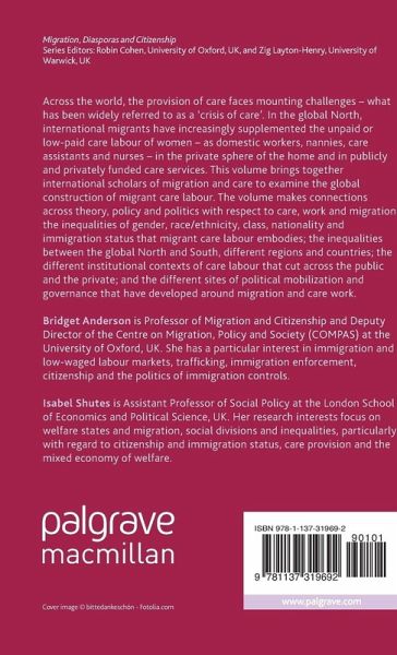 The provision of care has been widely referred to as facing a 'crisis'. International migrants are increasingly relied upon to provide care - as domestic workers, nannies, care assistants and nurses. This international volume examines the global construction of migrant care labour and how it manifests itself in different contexts.