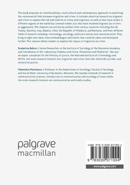 This book proposes an interdisciplinary, multicultural and contemporary approach to examining the controversial links between migration and crime. It includes empirical research on migrants and crime to explore the risk and realities of crime and migration, as well as how mass media in different regions of the world has covered violent acts that have involved migrants (as victims or aggressors). The chapters are written by authors from various countries including the UK, Turkey, Slovenia, Iraq, Albania, Chile, the Republic of Moldavia, and Romania, and from different fields of research including: criminology, sociology, political sciences and communication. They bring to light new ideas, new methodologies and results that could be taken and developed further. This volume allows readers to explore the impact of migration on crime.