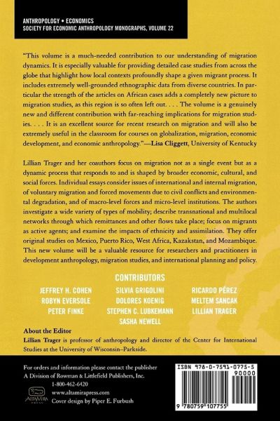 Trager and her coauthors focus on migration not as a single event but as a dynamic process that responds to and is shaped by broader economic, cultural, and social forces. Individual essays consider issues of international and internal migration; of transnational and multilocal networks through which remittances and other flows take place; and of migrants as active agents. They offer original studies on Mexico, Puerto Rico, West Africa, Kazakstan, and Mozambique. This new volume will be a valuable resource in development anthropology, migration studies, and international planning and policy.