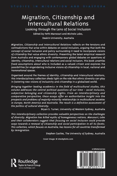 Migration, Citizenship and Intercultural Relations reflects on the tensions and contradictions that arise within debates on social inclusion, arguing that both the concept of social inclusion and policy surrounding it need to incorporate visions of citizenship that value ethnic diversity. Presenting the latest empirical research from Australia and engaging with contemporary global debates on questions of identity, citizenship, intercultural relations and social inclusion, this book unsettles fixed assumptions about who is included as a valued citizen and explores the possibilities for engendering inclusive visions of citizenship in local, national and transnational spaces. Organised around the themes of identity, citizenship and intercultural relations, this interdisciplinary collection sheds light on the role that ethnic diversity can play in fostering new visions of inclusivity and citizenship in a globalised world.